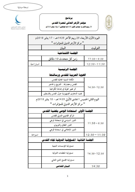 Παρουσία του Πατριάρχη Αλεξανδρείας Θεόδωρου Β’, άλλων θρησκευτικών ηγετών, εκπροσώπων δογμάτων και εκκλησιών από κάθε σημείο του πλανήτη, άρχισε, πριν από λίγο στο Κάιρο, το διήμερο Διεθνές Θρησκευτικό Συνέδριο, που διοργανώνει το Μουσουλμανικό Συμβούλιο Πρεσβυτέρων με τίτλο: “Διεθνής διάσκεψη Al – Azhar για την υποστήριξη των Ιεροσολύμων”