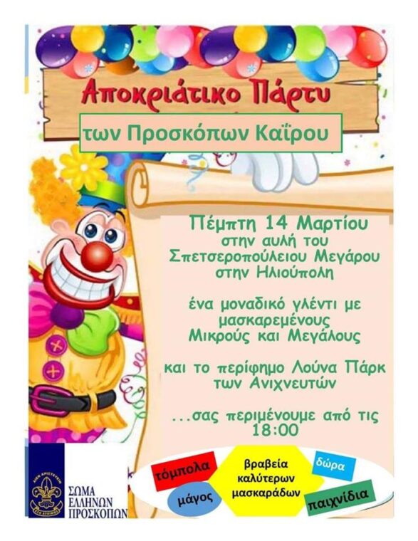 Το 1ο Σύστημα Προσκόπων Καϊρου προσκαλεί τους μικρούς και μεγάλους φίλους του, στο Λούνα Παρκ και χορό που διοργανώνει στο προαύλιο χώρο των Ελληνικών εκπαιδευτηρίων στην Ηλιούπολη.