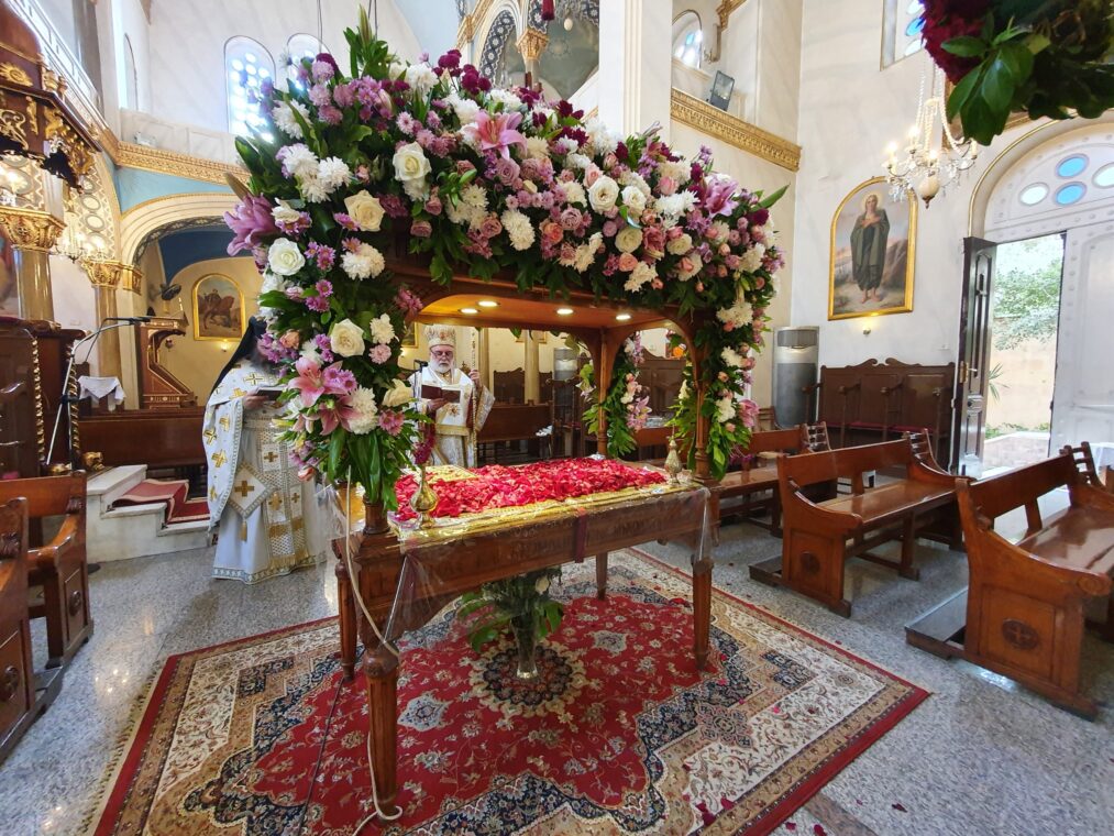 Συγκινημένος ο Μητροπολίτης Μέμφιδος έψαλλε στα Ελληνικά τα εγκώμια του Επιταφίου και οι ψάλτες στα Αραβικά. «Η ζωή εν τάφω, κατετέθης, Χριστέ…», «Άξιον εστί μεγαλύνειν σε τον Ζωοδότην…», «Αι γενεαί πάσαι ύμνον τη ταφή Σου προσφέρουσι, Χριστέ μου», αντηχούσαν στο ναό.