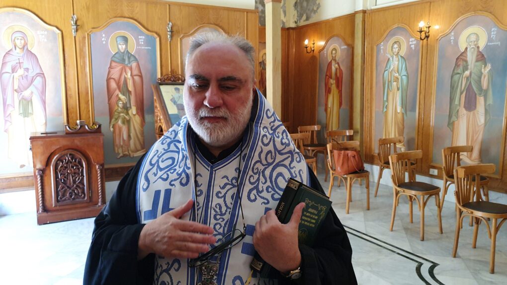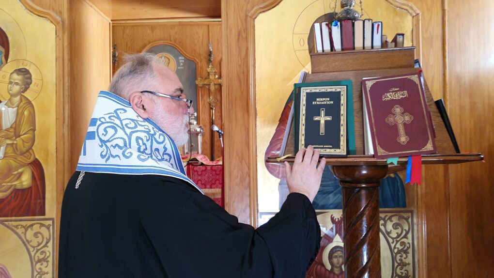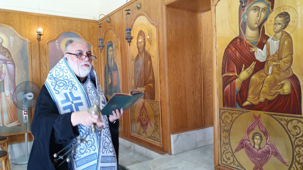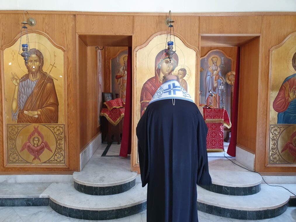 Κεκλεισμένων των θυρών και χωρίς πιστούς μπροστά από την εικόνα της Παναγίας προσευχήθηκε για την εξάλειψη της πανδημίας του κορονοϊού. Αμέσως μετά ο μητροπολίτης Μέμφιδος προσευχήθηκε στην εικόνα του Αγίου Νεκταρίου, του Αγίου που με την υπομονή, καρτερία και ακλόνητη πίστη στο Θεό άντεξε τις διώξεις και τις κακουχίες που υπέστη.