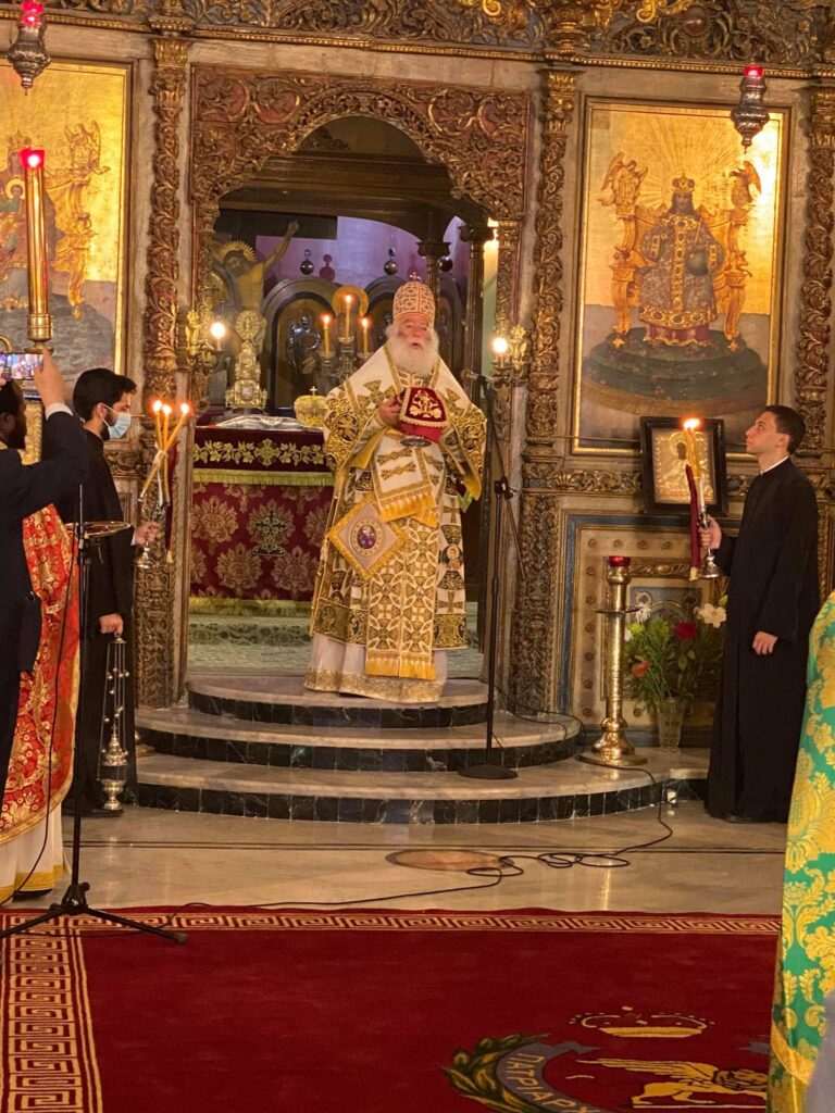 «Φτάσαμε στο μέσο αυτής της Αγίας και Μεγάλης Τεσσαρακοστής. Μέσα στους κόπους στις αγωνίες μας, στις αδυναμίες μας, βλέπουμε ένα φως. Αυτό το φως είναι η ελπίδα της Αναστάσεως. Από την ημέρα που γεννηθήκαμε ανεβαίνουμε έναν Γολγοθά… Γονατισμένοι από την πανδημία όλη η ανθρωπότητα κουράσθηκε να ανεβαίνει αυτόν τον Γολγοθά. Θέλει μια ξεκούραση. Θέλει μια ανάπαυλα. Θέλει κάπου να καθίσει να ξεκουραστεί. Ελπίδα για όλους τους ανθρώπους στο Θεό που πιστεύομε πάντα είναι να υψώνουν τα χέρια τους και να ευγνωμονούν το δημιουργό.