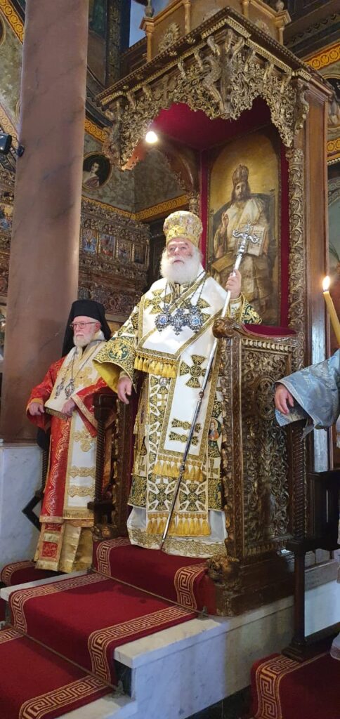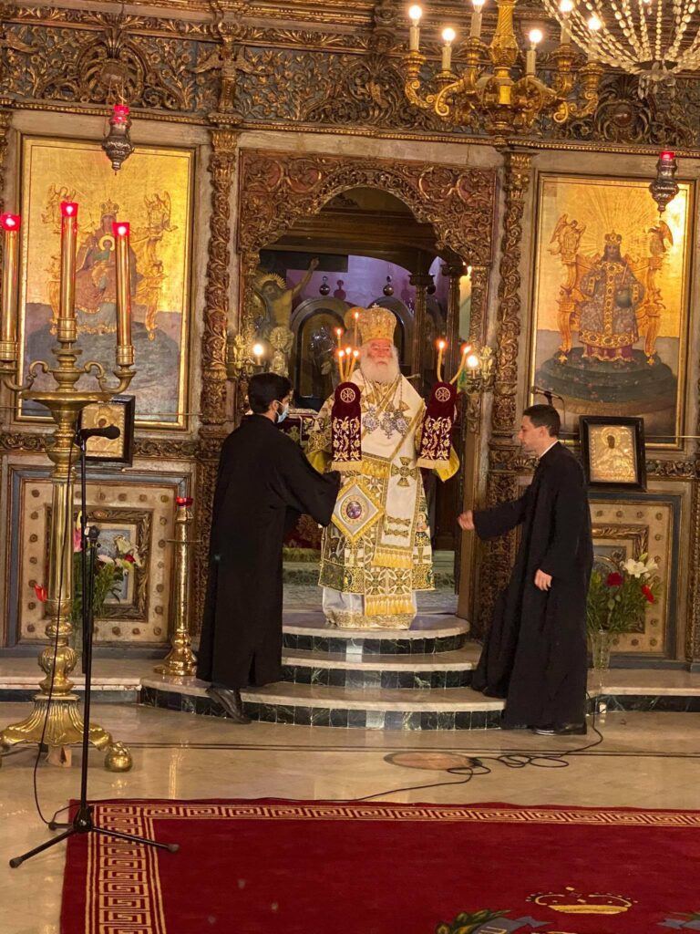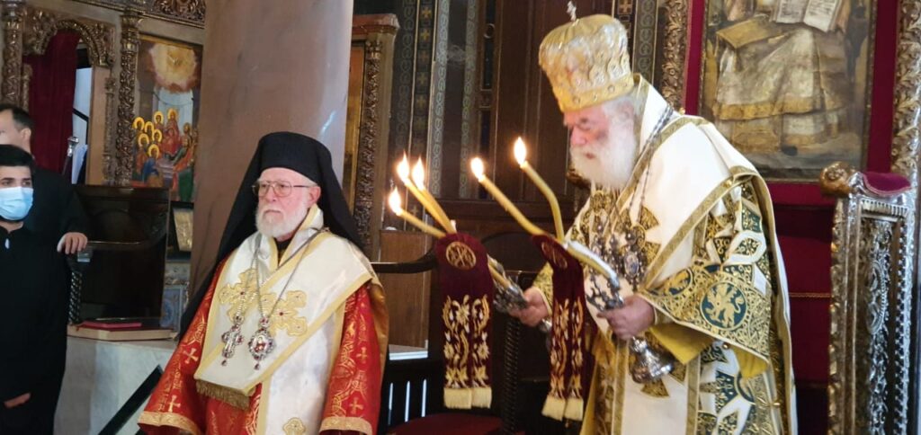 Επίσης, ο Προκαθήμενος του Δευτερόθρονου Πατριαρχείου απέτισε φόρο τιμής και επανέλαβε την αμέριστη υποστήριξή του στον γέροντα Αρχιεπίσκοπο Σινά, Φαράν και Ραϊθώ κ. Δαμιανό, ο οποίος παρακολούθησε την Ακολουθία της Σταυροπροσκήσεως στον Αγ. Νικόλαο, αλλά και σε ολόκληρη την αδελφότητα της Ι.Μ Αγ. Αικατερίνης Σινά.
