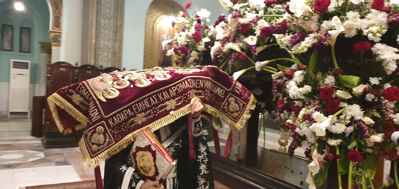 Την Ακολουθία του Επιταφίου τέλεσε ο Μ. Εκκλησιάρχης του Πατριαρχείου Αλεξανδρείας Αρχιμανδρίτης Στέφανος Σουλιμιώτης, ο οποίος είναι εφημέριος του ναού. Τους ύμνους έψαλλε ο πρωτοψάλτης της Ε.Κ.Κ Ιωάννης Κούντριας.
