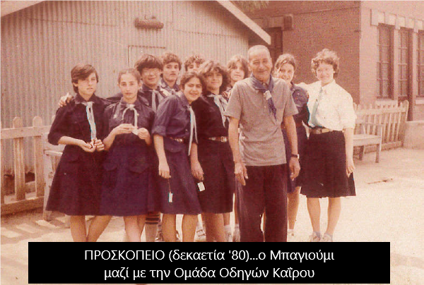 Ακούγοντας το όνομα «Μπαγιούμι», εκατοντάδες Πρόσκοποι και Οδηγοί φωτίζει το πρόσωπο τους. Ο πιστός φύλακας του ΠΡΟΣΚΟΠΕΙΟΥ μας, συνδέθηκε η παρουσία του με τα ομορφότερα χρόνια τριών γενιών (‘60, ‘70 και ‘80).