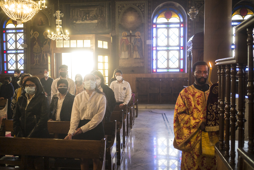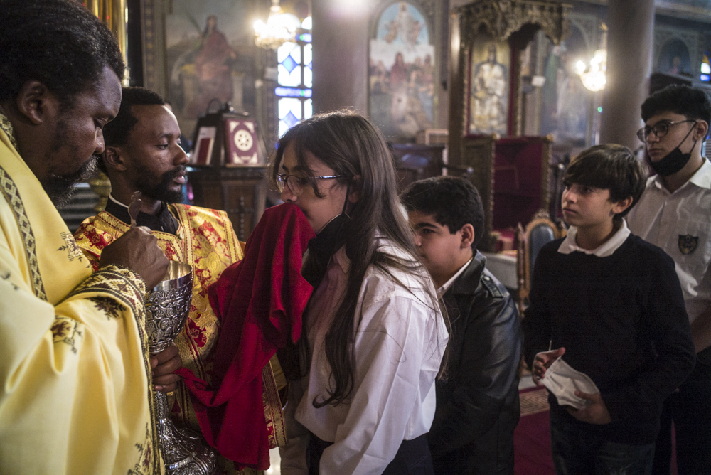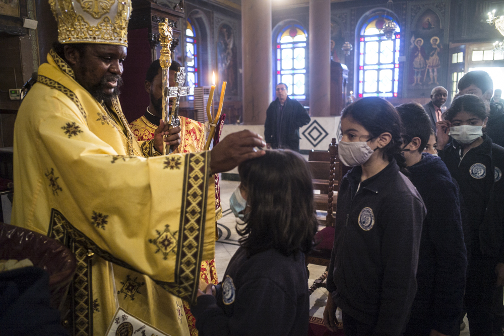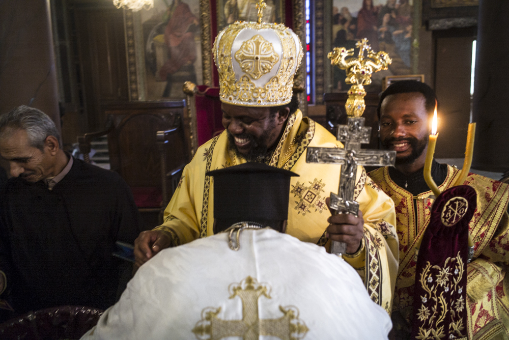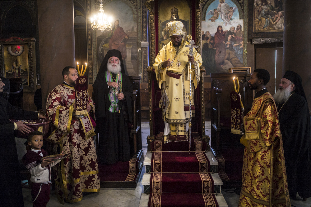 Στην Θεία Λειτουργία προεξήρχε ο Μακαριώτατος Πατριάρχης Αλεξανδρείας συμπροσευχούμενος μετά του Αρχιεπισκόπου Σιναίου κ. Δαμιανού και συνλειτουργούντος μετά του Σεβασιώτατου Μητροπολίτη Γουινέας κ. Γεώργιου, του Σεβάσμιώτατου Μητροπολίτη Μέμφιδος και Πατριαρχικού Επιτρόπου Καΐρου κ. Νικοδήμου, του Σεβασμιώτατου Μητροπολίτη Κατάγκας κ. Μελέτιου, του Σεβάσμιώτατου Μητροπολίτη Κινσάσας κ. Θεοδοσίου και του νεοχειροτονηθέντα Θεοφιλεστάτου Επισκόπου Κωνσταντιανής κ.Κοσμά. Έψαλαν ο Πρωτοψάλτης της Ελληνικής Κοινότητας Καΐρου κ. Ιωάννης Κούντριας με τον κ. Σιμεών Μουγιαγιά της Εκκλησίας του Κονγκό που ήρθε για να τιμήσει τον φίλο του και να ψάλει στην σημαντική αυτή ημέρα χαράς.