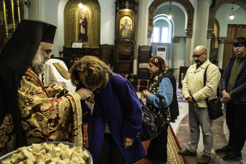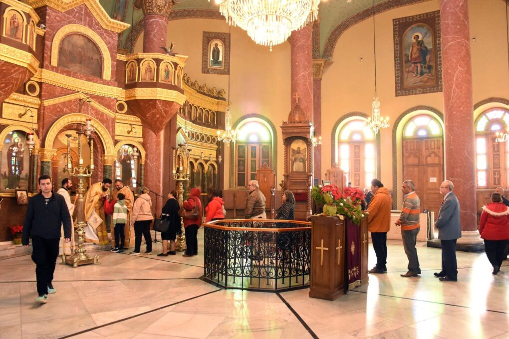 Μετά το πέρας της Θείας Λειτουργίας οι επίσημοι του Ναού ένωσαν τα χέρια τους με τον Δεσπότη και έκοψαν την Πρωτοχρονιάτικη πίτα για το καλό της χρονιάς.