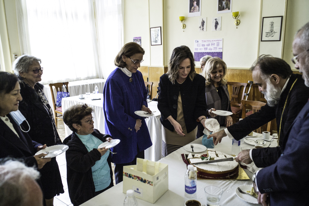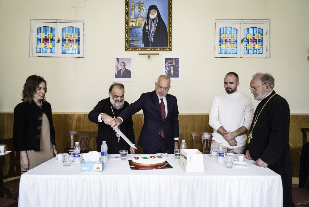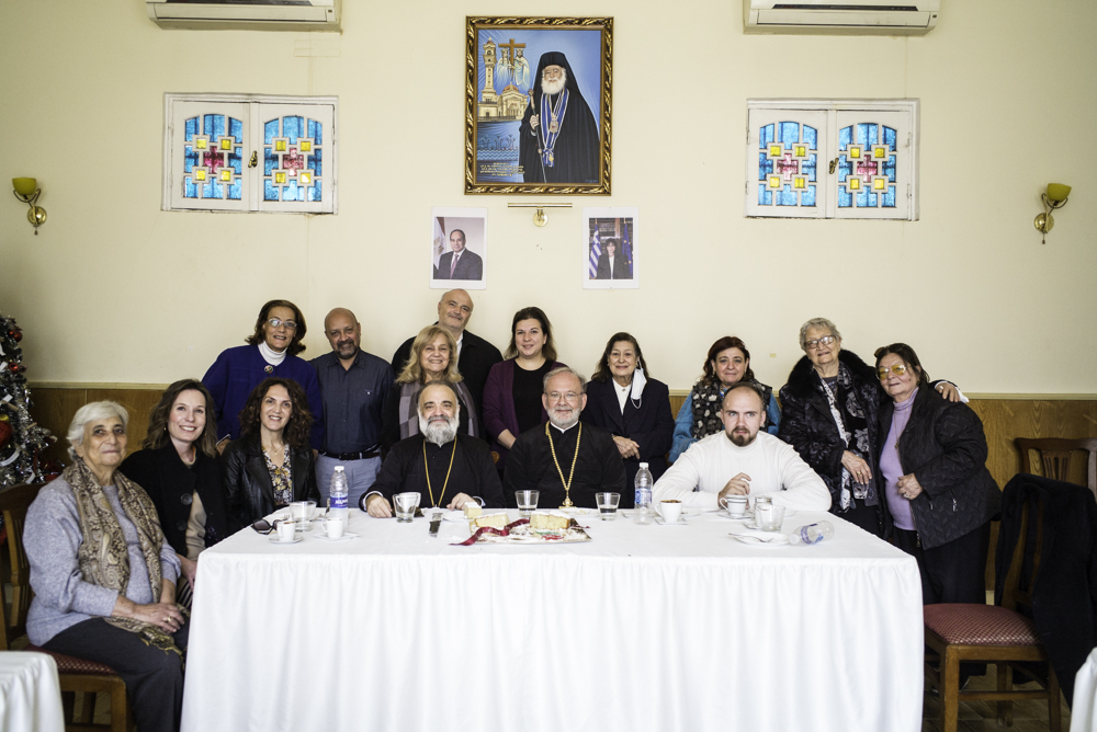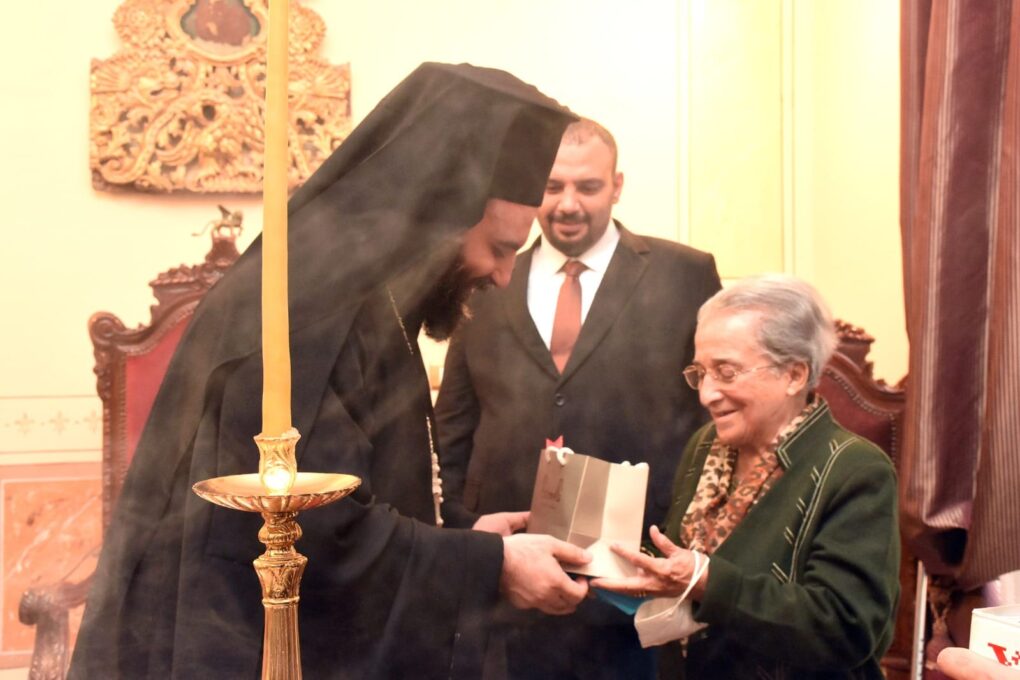 Ο Καθηγούμενος ευχήθηκε από καρδιάς σε όλους καλή χρονιά με υγεία και αγάπη. Ευχαρίστησε ιδιαιτέρως την κα Βάσω Γαζή, Επίτροπο της Μονής και Αντιπρόεδρο της Φιλοπτώχου Αδελφότητας Ελληνίδων Κυριών Καΐρου για την ακάματη και ανιδιοτελή προσφορά της προς το Μοναστήρι, αλλά και προς την Ελληνική Παροικία του Καΐρου. Στην συνέχεια της προσέφερε ένα καλαίσθητο δώρο και της ευχήθηκε από καρδιάς χρόνια πολλά και για την ονομαστική της εορτή.