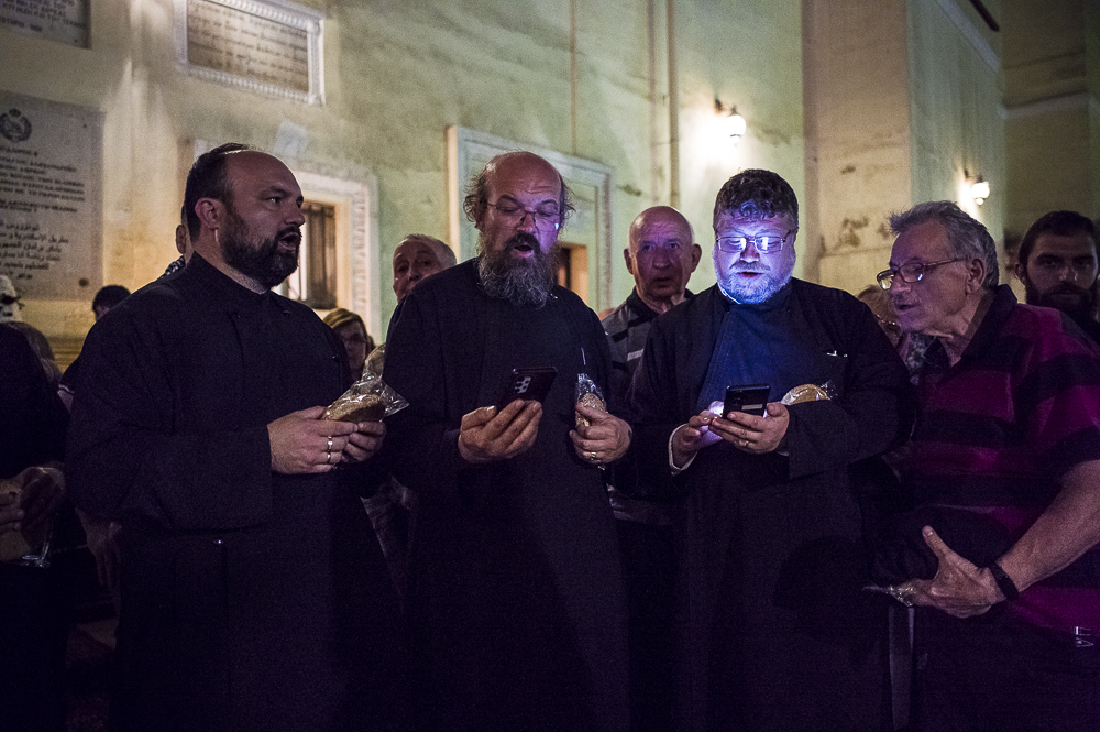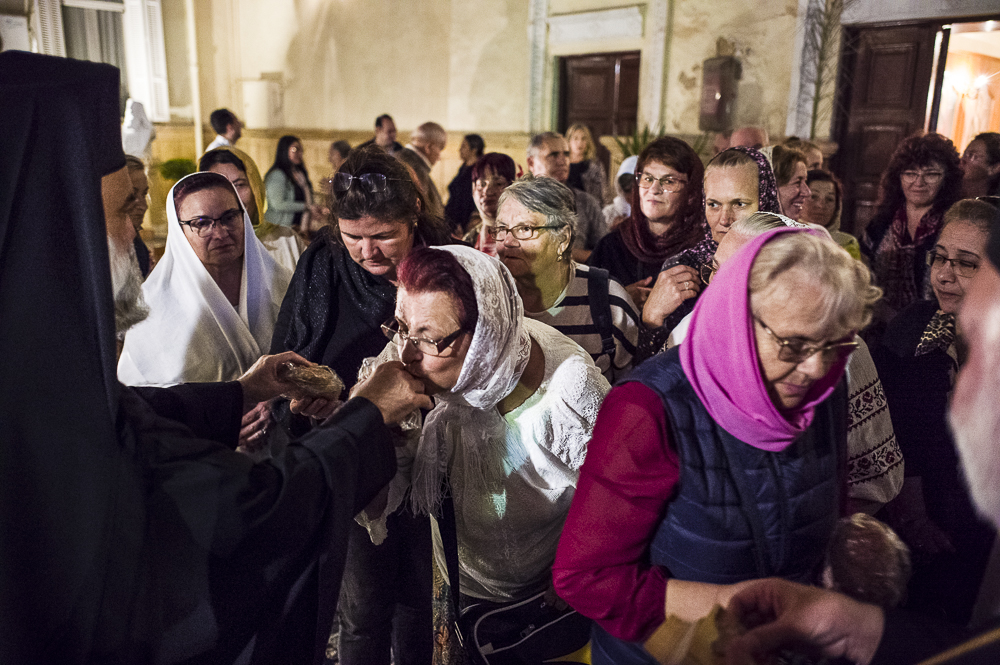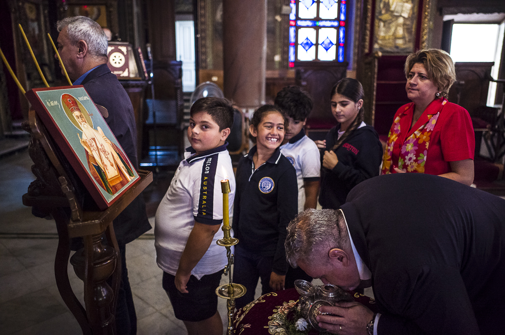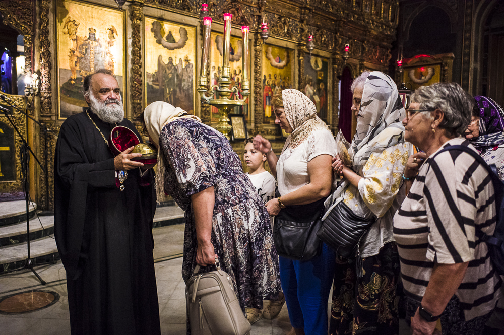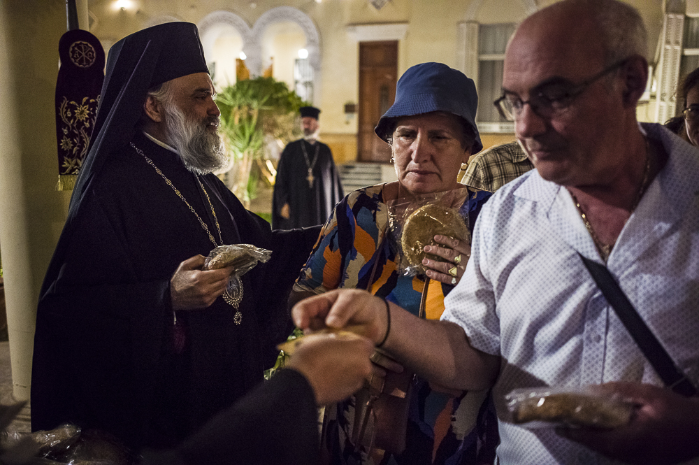 Μετά το πέρας του Εσπερινού ακολούθησε κέρασμα από την Πατριαρχική Επιτροπεία στον προαύλιο χώρο του Ναού, με τον Θεοφιλέστατο Επίσκοπο Ιππώνος Στέφανο να ξεναγεί τους κατενθουσιασμένους επισκέπτες προσκυνητές από την Ρουμανία στο Ιερό Ναό του Αγίου Νικολάου, στο σπίτι του Αγίου, και να παίρνει τέλος με αγάπη τα πολυάριθμα χαρτάκια με τα ονόματα «υπέρ υγείας» και «υπέρ αναπαύσεως» που θα διαβάσει στην Λειτουργία της επόμενης ημέρας.