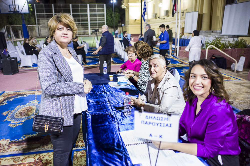 Επίσης, ευχαριστούμε τον απερχόμενο Γενικό Γραμματέα Απόδημου Ελληνισμού κ. Γιάννη Χρυσουλάκη. Ευχαριστούμε τον Σεβασμιώτατο Μητροπολίτη Μέμφιδος και Πατριαρχικό Επίτροπο Καΐρου κ. Νικόδημο, για την θέρμη με την οποία στηρίζει τις δραστηριότητες της Παροικίας μας καθώς και τον Καθηγούμενο της Ιεράς Μονής Αγίου Γεωργίου Παλαιού Καΐρου κ. Δαμασκηνό.