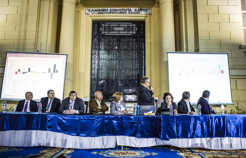 Κλείνοντας τον πρόλογο του απολογισμού του έτους 2023 – 2024 ο Πρόεδρος της Ελληνικής Κοινότητας ευχαρίστησε θερμά όλους τους προαναφερθέντες συνεργάτες του, αναφέροντας «καθώς όπως όλοι γνωρίζουμε το έργο στην Ελληνική Κοινότητα Καΐρου είναι συλλογικό και το αποτέλεσμα μοιράζεται εξίσου στα εννέα μέλη της Διαχειριστικής Επιτροπής όπως και στους 350 περίπου εργαζόμενους που στηρίζουν την προσπάθειά μας για μια κοινότητα οικονομικά ανεξάρτητη, δραστήρια, με αρχές και με όραμα για το μέλλον όσο δύσκολο κι αν φαίνεται αυτό.»