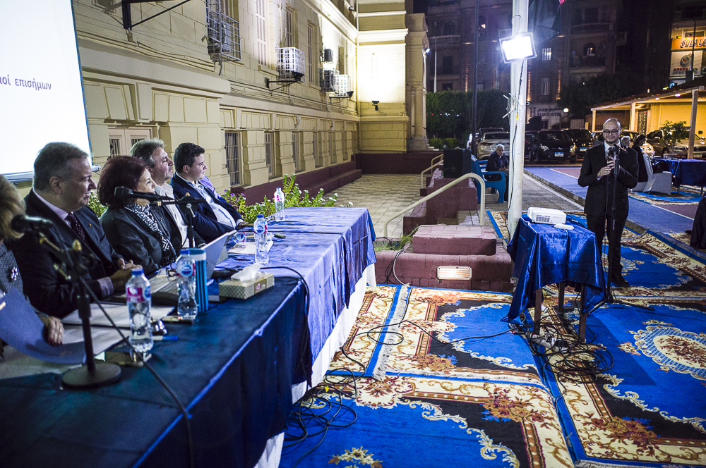 Κεντρικός ομιλητής της Γενικής Συνέλευσης ο Πρόεδρος της Ελληνικής Κοινότητας Καΐρου κ. Χρήστος Καβαλής, ο οποίος παίρνοντας τον λόγο, καλωσόρισε στις εργασίες της Συνέλευσης τον Θεοφιλέστατο Επίσκοπο Ιππώνος Στέφανο, τον Έλληνα Πρέσβη στην Αίγυπτο κ. Νικόλαο Παπαγεωργίου, τον Επιτετραμμένο της Κυπριακής Πρεσβείας κ. Ονούφριο Οικονομίδη, τον Γενικό Πρόξενοτης Ελλάδας στο Κάιρο κ. Συμεών Λιναρδάκη, τον Πρόεδρο της Ελληνικής Κοινότητας Αλεξανδρείας κ. Ανδρέα Βαφειάδη, τον Συντονιστή Εκπαίδευσης Βορείου Αφρικής και Μέσης Ανατολής κ. Γιώργο Κοκορέλη και τον εκπρόσωπο του Σ.Α.Ε. κ. Βασίλειο Ζουέ.
