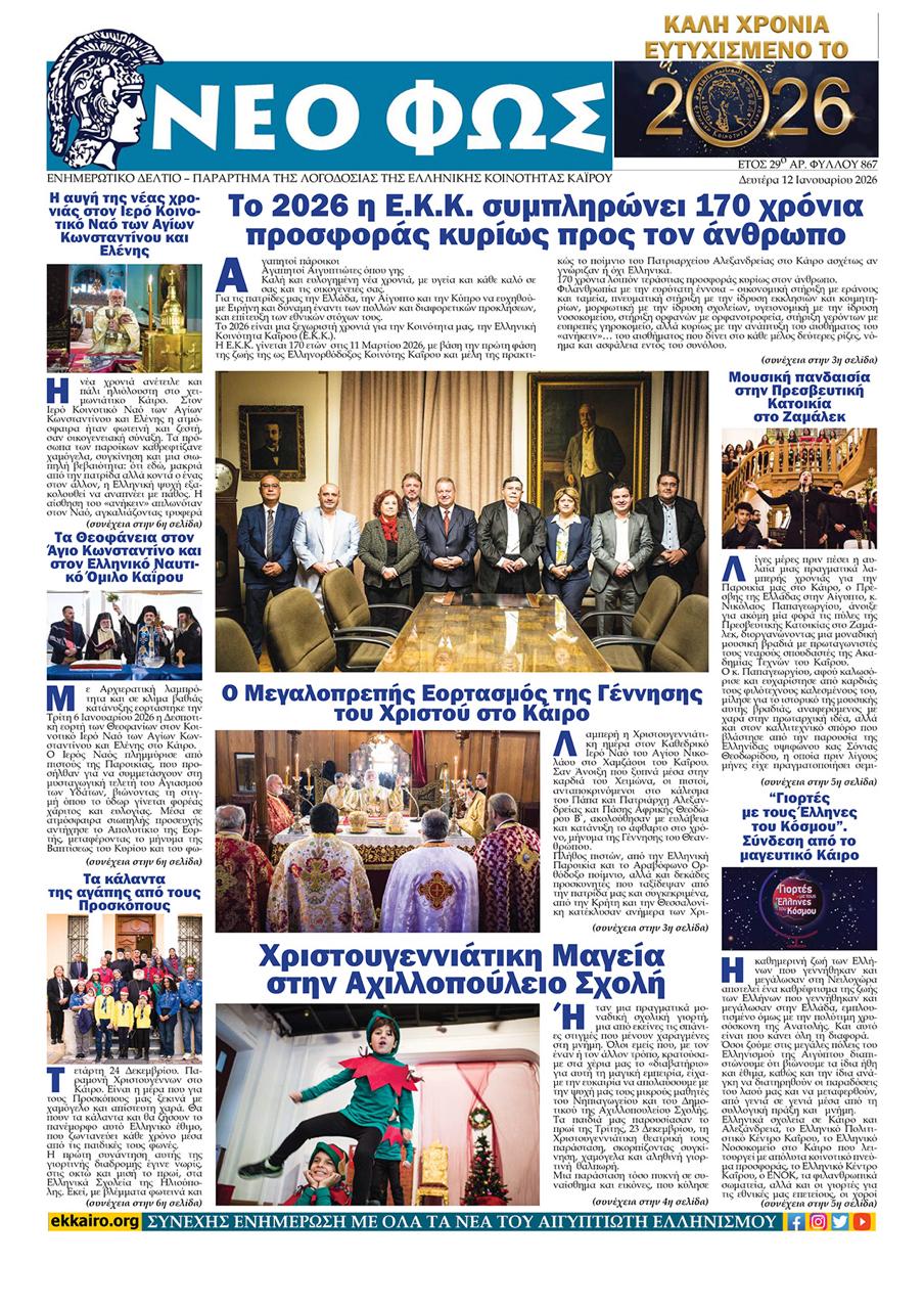 Το πρωί της Παρασκευής 20 Δεκεμβρίου το Τμήμα «Μητρικής Γλώσσας» του Ελληνικού Πολιτιστικού Κέντρου Καΐρου πραγματοποίησε την Χριστουγεννιάτική του γιορτή παρουσιάζοντας στους περήφανους γονείς την πρόοδο, αλλά και την αγάπη των παιδιών για την μητρική τους γλώσσα.