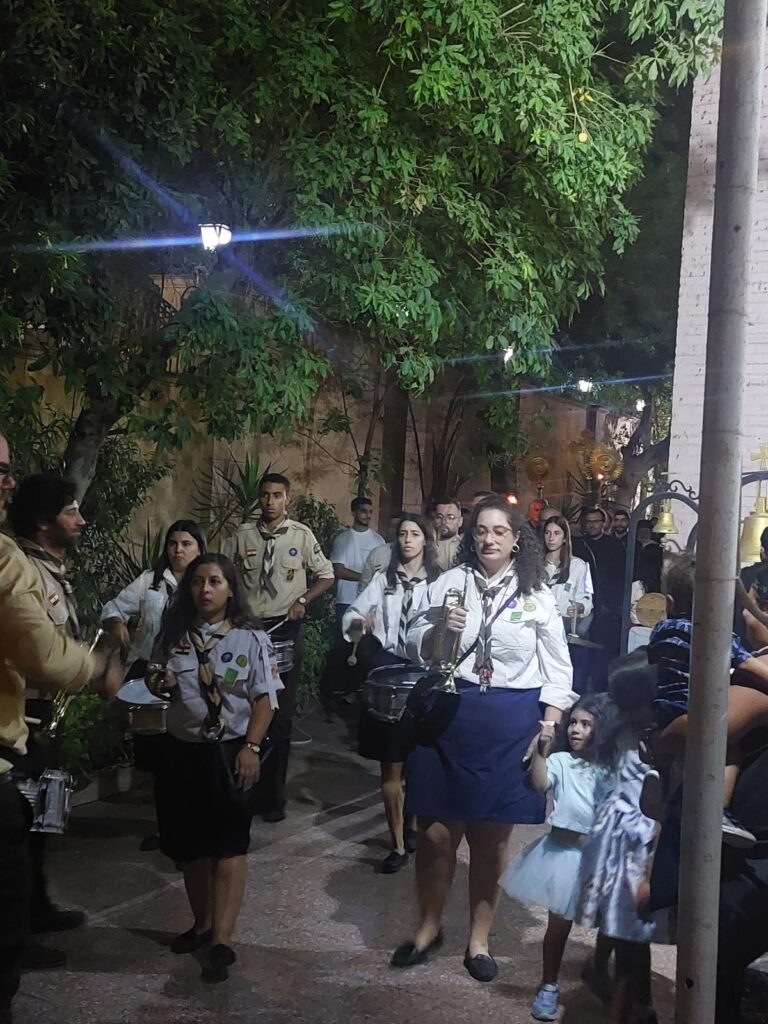 Η λιτάνευση της ιερής εικόνας στον προαύλιο χώρο συνοδεύτηκε από ψαλμούς, ύμνους και την πειθαρχημένη παρουσία των Αραβόφωνων προσκόπων, ενώ οι πιστοί, με βλέμμα γεμάτο συγκίνηση, ακούμπησαν την Ιερή εικόνα αναζητώντας την παρηγοριά Της.