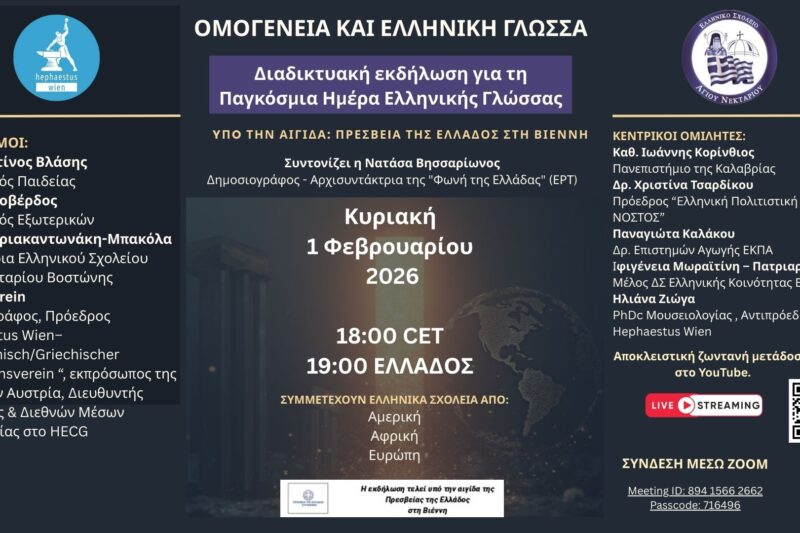 Η εκδήλωση θα πραγματοποιηθεί την Τετάρτη 11 Φεβρουαρίου 2026 και ώρα 7:30 μ.μ. στο Ελληνικό Κέντρο Καΐρου.