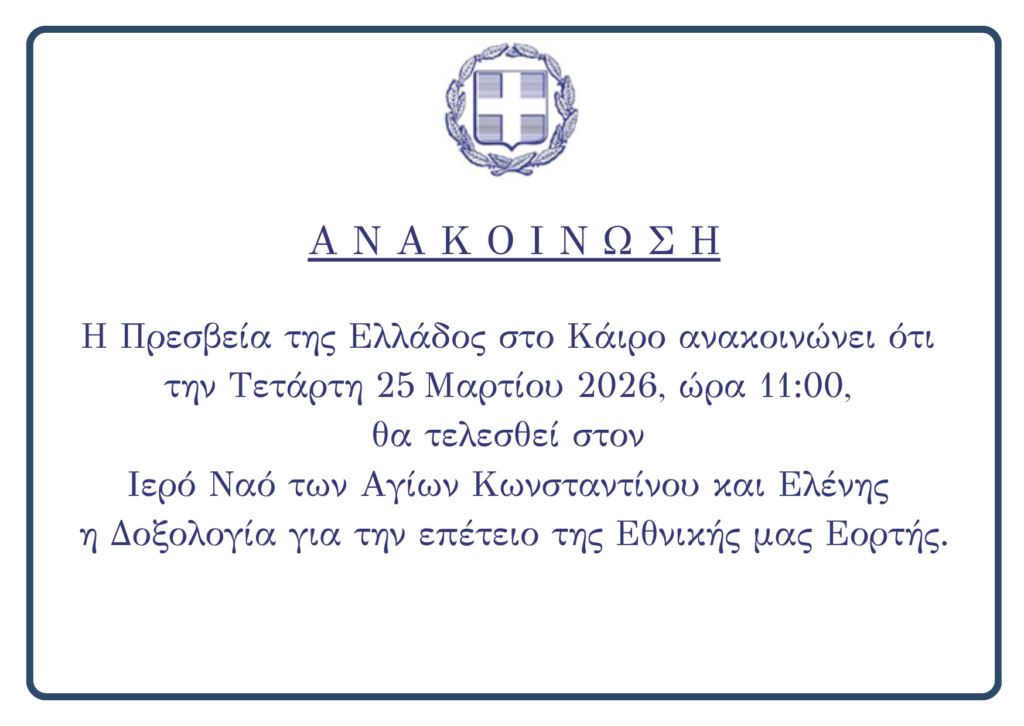 Πρεσβεία της Ελλάδος στο Κάιρο-Ανακοίνωση