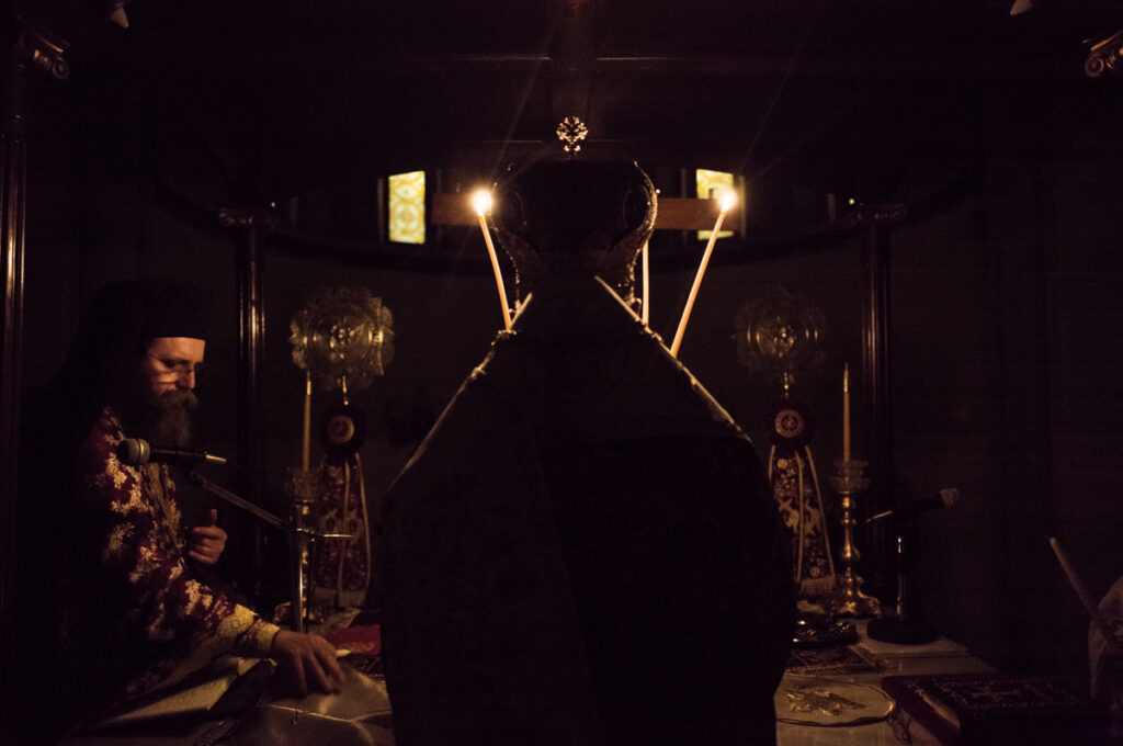 Λίγο πριν την κορύφωση της Αναστάσιμης Ακολουθίας, το σκοτάδι σκέπασε τον ναό και μια απόλυτη, σχεδόν ιερή σιγή απλώθηκε από άκρη σ’ άκρη. Ήταν η στιγμή της προσμονής, η σιωπηλή μετάβαση από το πένθος στο φως, από την ανθρώπινη αγωνία στη Θεία ελπίδα. Οι ύμνοι αντηχούσαν χαμηλόφωνα από το Ιερό, ενώ οι πιστοί, με αναμμένα κεριά στα χέρια, περίμεναν καθηλωμένοι τη στιγμή.