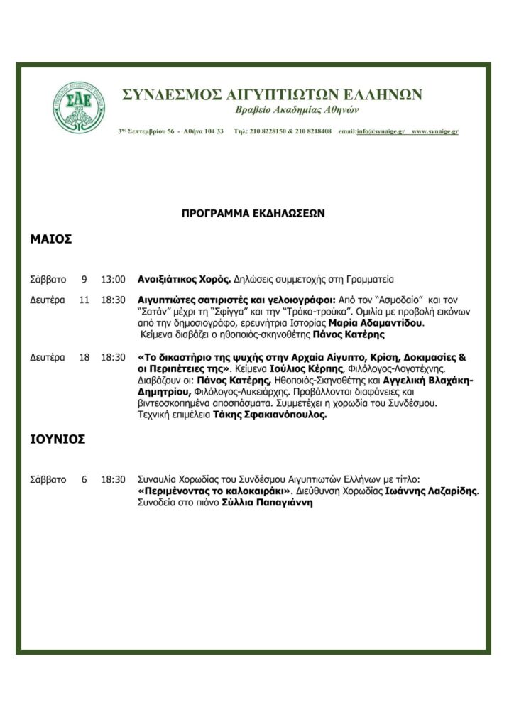 Πρόγραμμα Εκδηλώσεων ΣΑΕ