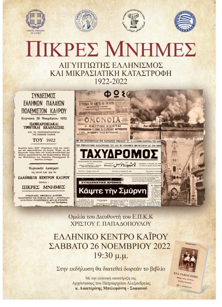 Το Σάββατο 26 Νοεμβρίου πραγματοποιήθηκε στο Ελληνικό Κέντρο Καΐρου μια πολύ ενδιαφέρουσα ομιλία με αφορμή τα 100 χρόνια από την Μικρασιατική Καταστροφή από τον Διευθυντή του […]